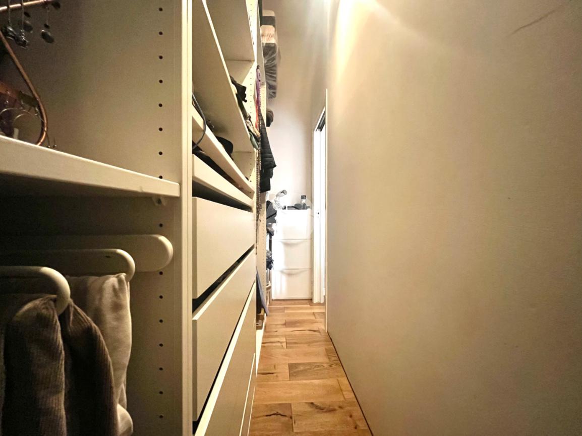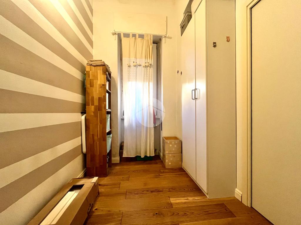 Tramite un comodo disimpegno, in questo momento adibito ad area living, si accede alla camera matrimoniale con cabina armadio.
